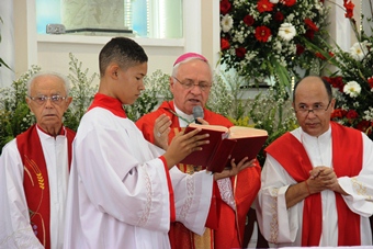 O pré-candidato a governador da Bahia, Geddel Vieira Lima (PMDB), participou na manhã de sexta-feira (13), da missa festiva em louvor a Santa Luzia, reverenciada como a “Protetora dos Olhos”, padroeira do município de Santaluz. Acompanhado do irmão, deputado federal Lúcio Vieira Lima (PMDB), Geddel desembarcou no Aeroporto de Valente ás 09h, onde foi recepcionado pelas lideranças pemedebistas do território do sisal, simpatizantes e representantes dos diversos partidos que vão lhe apoiar na eleição do próximo ano, ou trabalham com objetivo que seja indicado candidato único a ser apoiado pela oposição ao governo Wagner.
